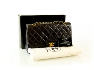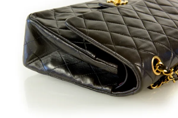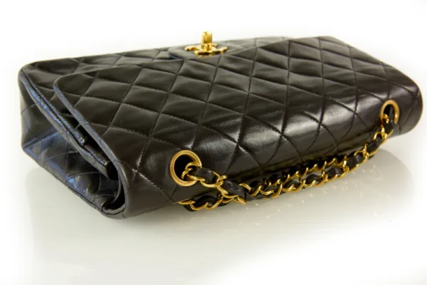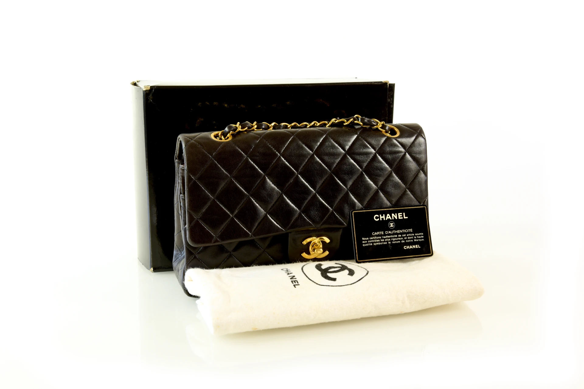 Generellt: En utsökt CHANEL Double Flap Medium i svart lammskinn med detaljer i guld. Levereras komplett med dustbag, kartong, intakt serial sticker, authenticity card och äkthetsintyg. Utsökt skick |