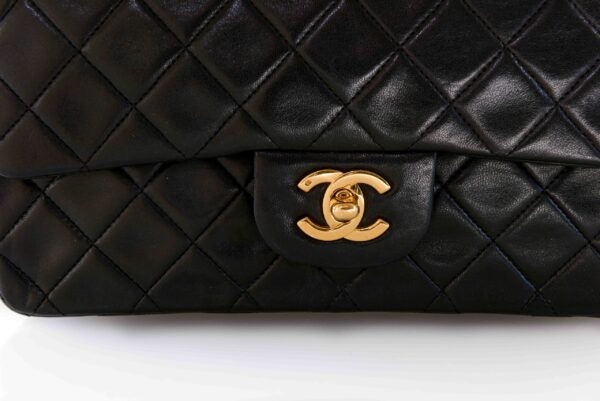 Generellt: En utsökt CHANEL Small Double Flap i svart lammskinn med detaljer i guld.