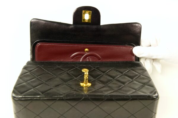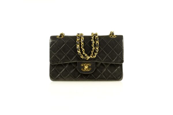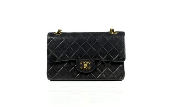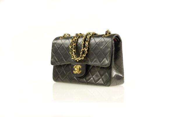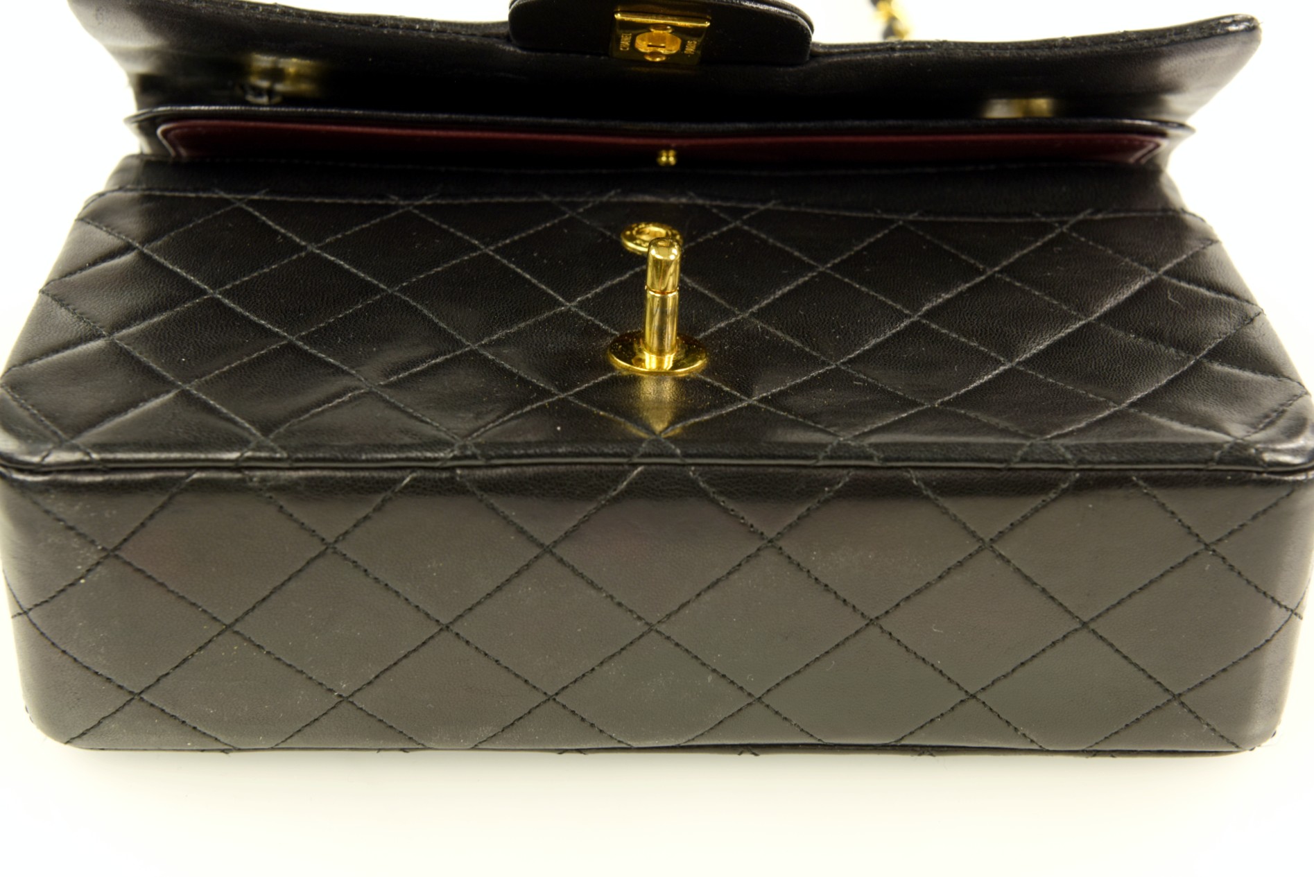 Generellt: En utsökt CHANEL Small Double Flap i svart lammskinn med detaljer i guld. Levereras komplett med dustbag, intakt serial sticker och äkthetsintyg. Utsökt skick |