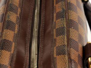- Damier: Mycket fint skick, begränsat ytligt slitage i närheten av dragkedja