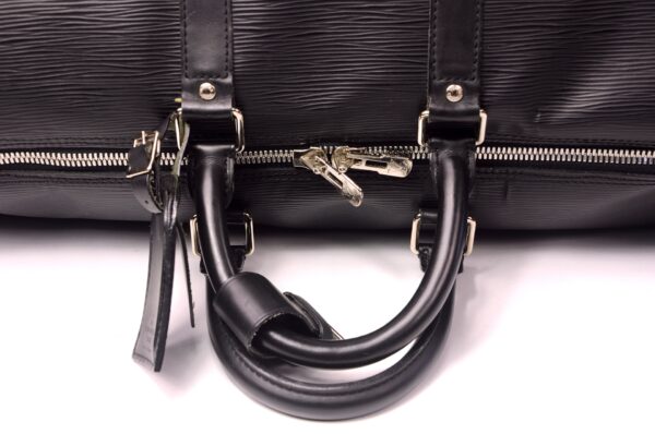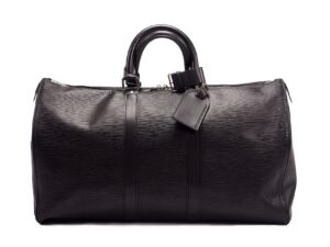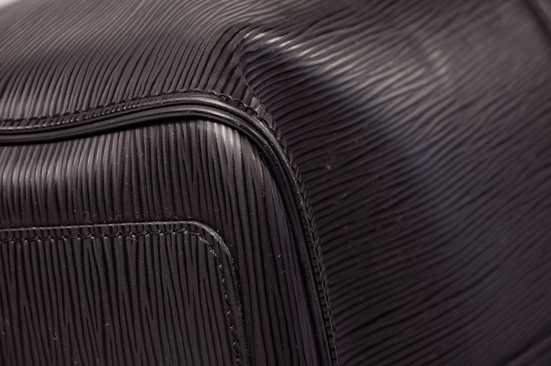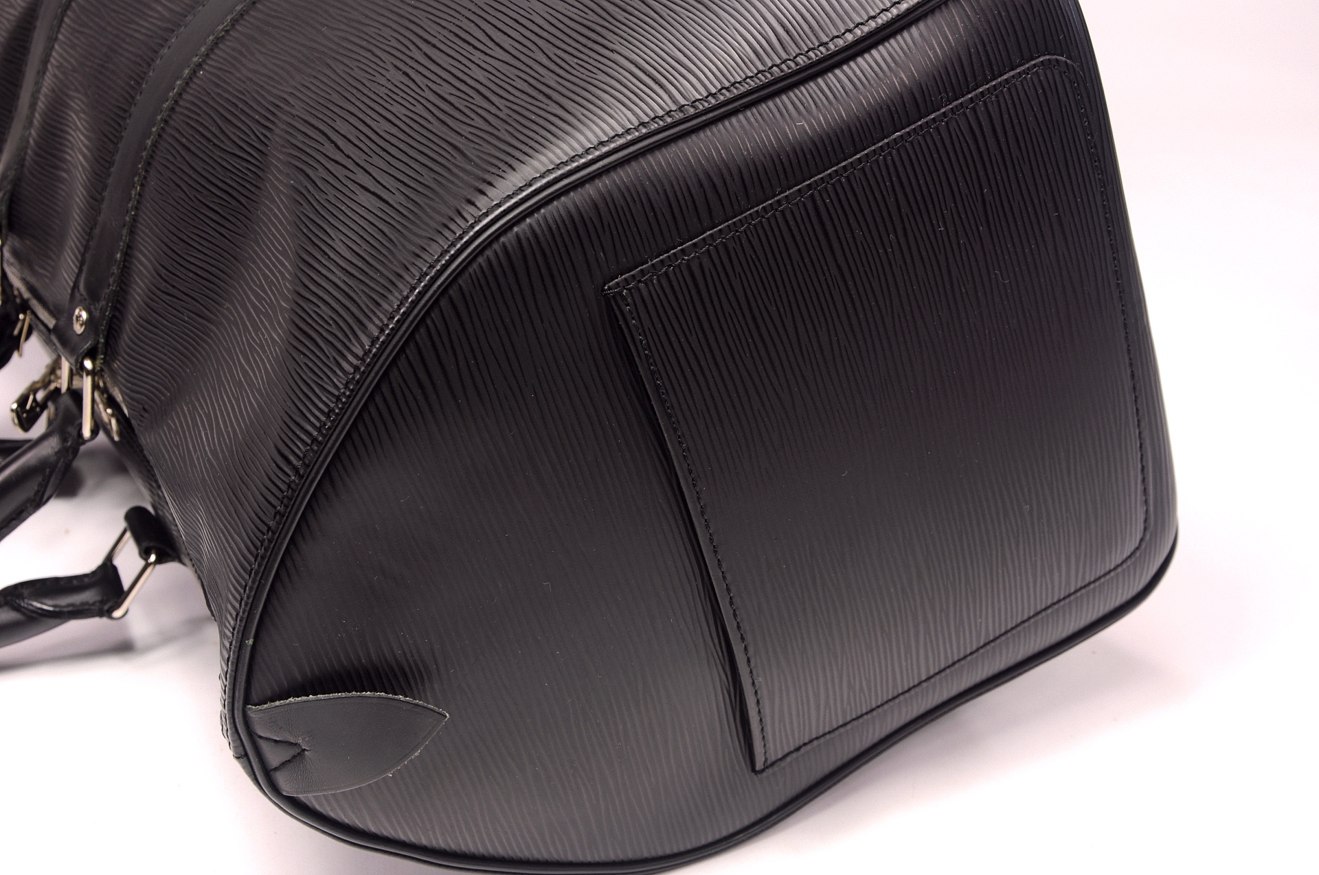 Generellt: Louis Vuitton Keepall 45 Epi nya modellen tillverkad 2006 med svart inredning i tyg ink en ficka och hardware i silver. Utsökt skick på hela väskan, så bra det kan bli begagnad. Perfekt för dig som inte vill sticka ut med de klassiska mönster men ändå andas exklusivitet. Levereras ink äkthetsintyg, name tag och handle strap.Mycket dyr som ny. |