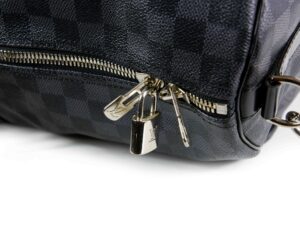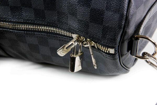 Generellt: En 55 Keepall Damier Graphite Bandoulière i mycket fint skick. Levereras ink axelrem, name tag, lås och handle strap.