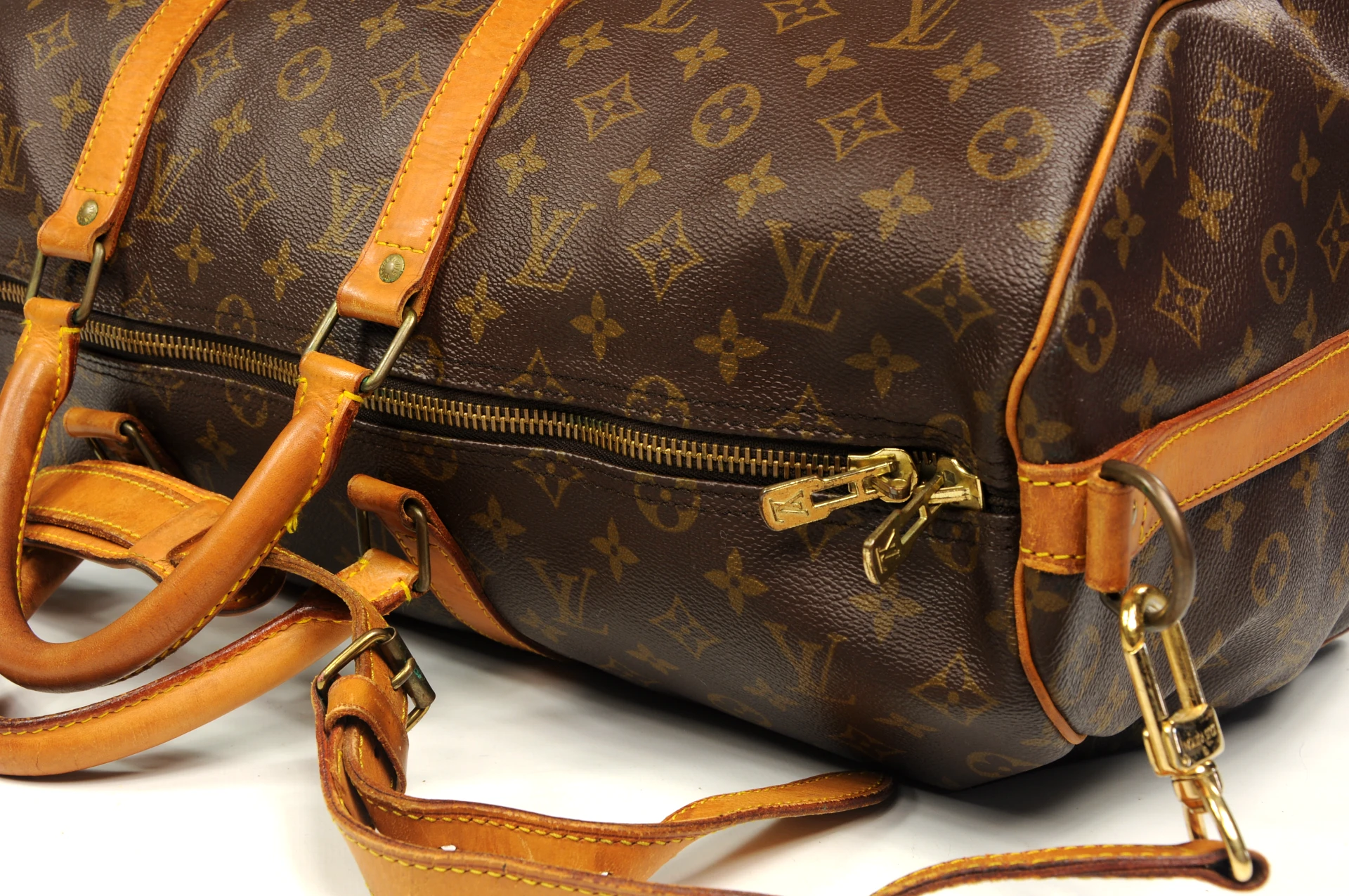 Generellt: En vacker vintage Louis Vuitton Keepall 55 Monogram. Ger ett vackert intryck trots sprickor, patina och fläckar. Den som tycker om vintage är det ett bra köp. Det går att byta allt läder hos LV i framtiden och få en i stort sätt ny väska till ett bra pris. Levereras ink äkthetsintyg och axelrem |