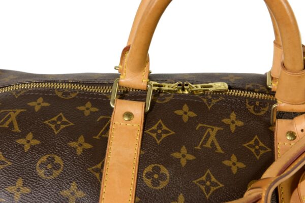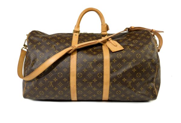 Generellt: En mycket fin Louis Vuitton Keepall 55 Bandoulière med name tag och handle strap. Ganska ljus och mycket vacker patina Inga sprickor på handtag eller på skinn. Levereras ink äkthetsintyg, axelrem, name tag och handle strap