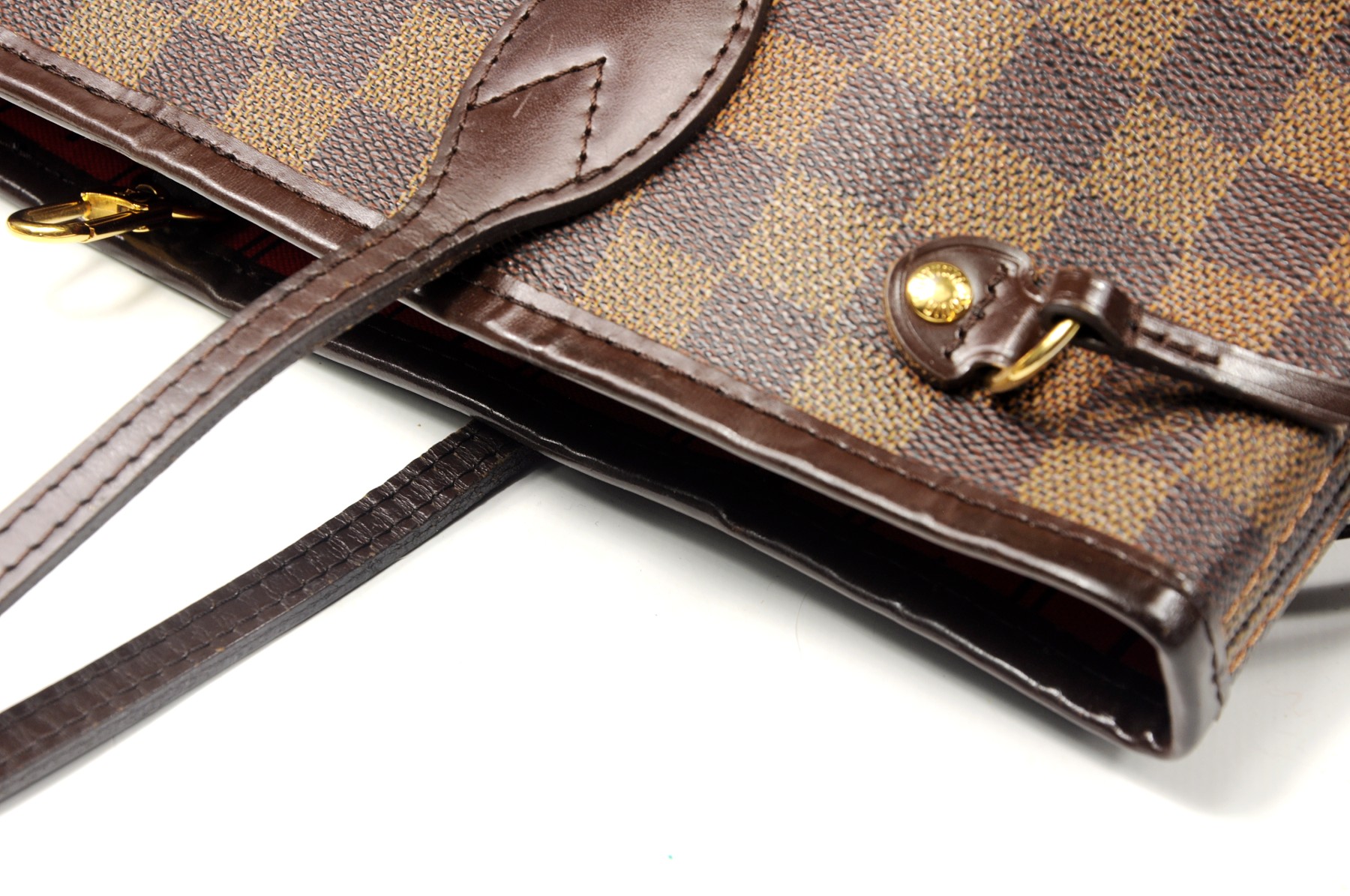 Generellt: En mycket fin Louis Vuitton Neverfull PM Damier Ebene. Ovanligt bra skick för att vara en neverfull . Liten svag vattenfläck i botten på inredningen. I övrigt väldigt fin utan smuts. Fina straps och fint kantband runt öppningen. Vacker kontrast på den röda inredningen och damier. |