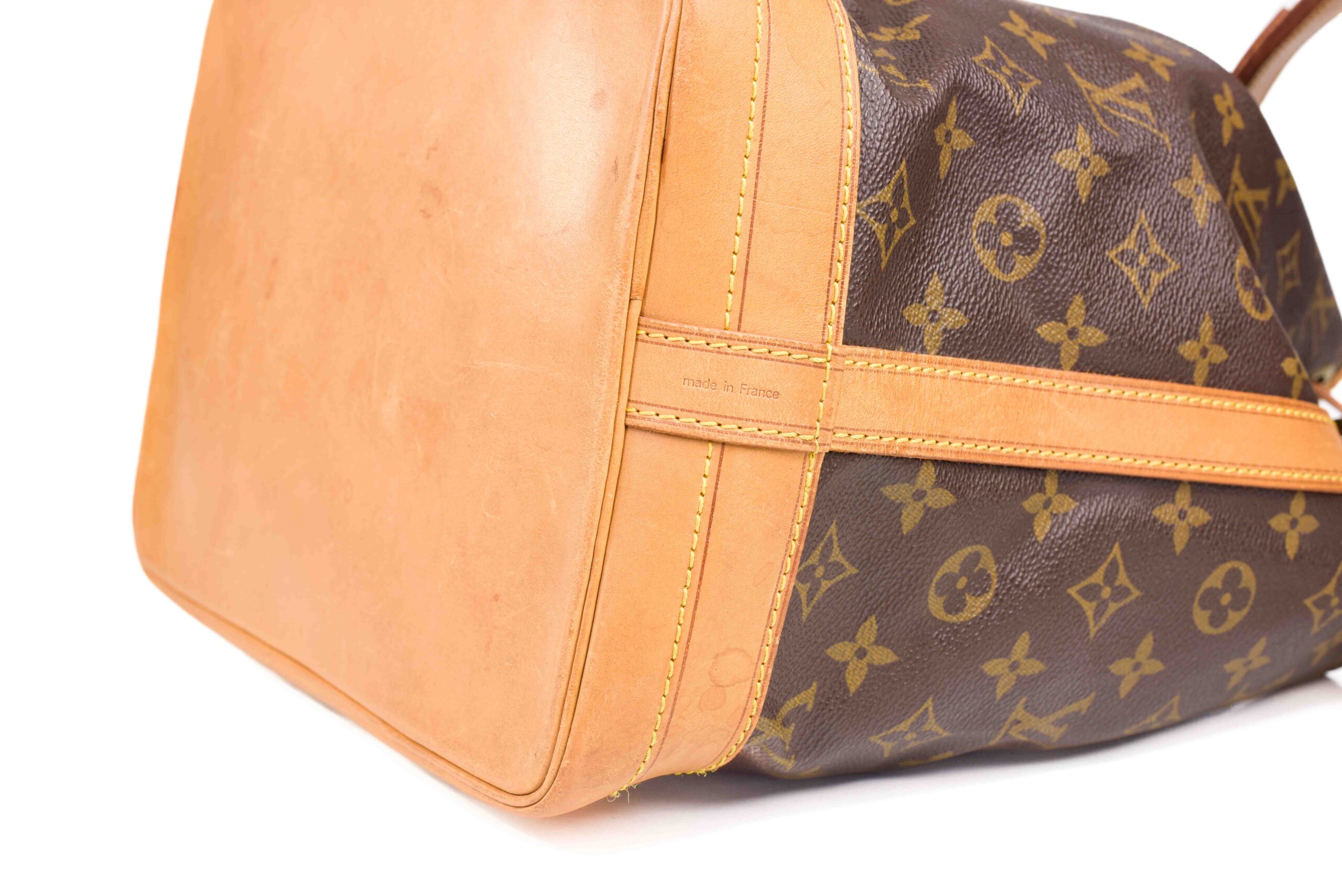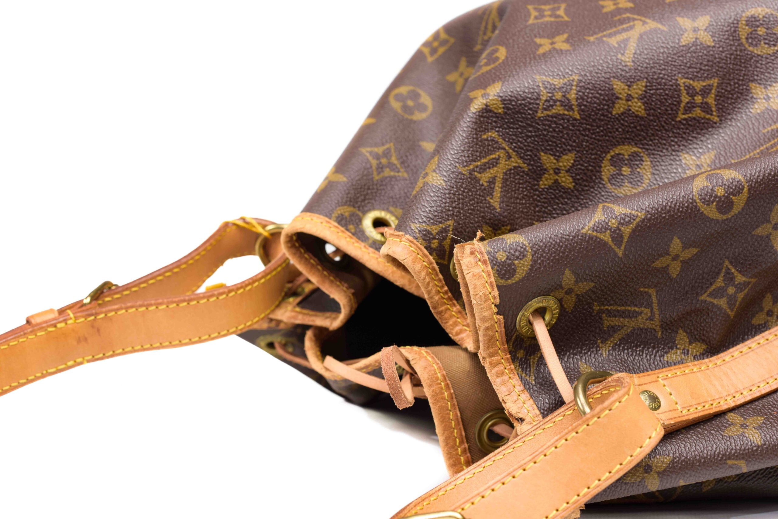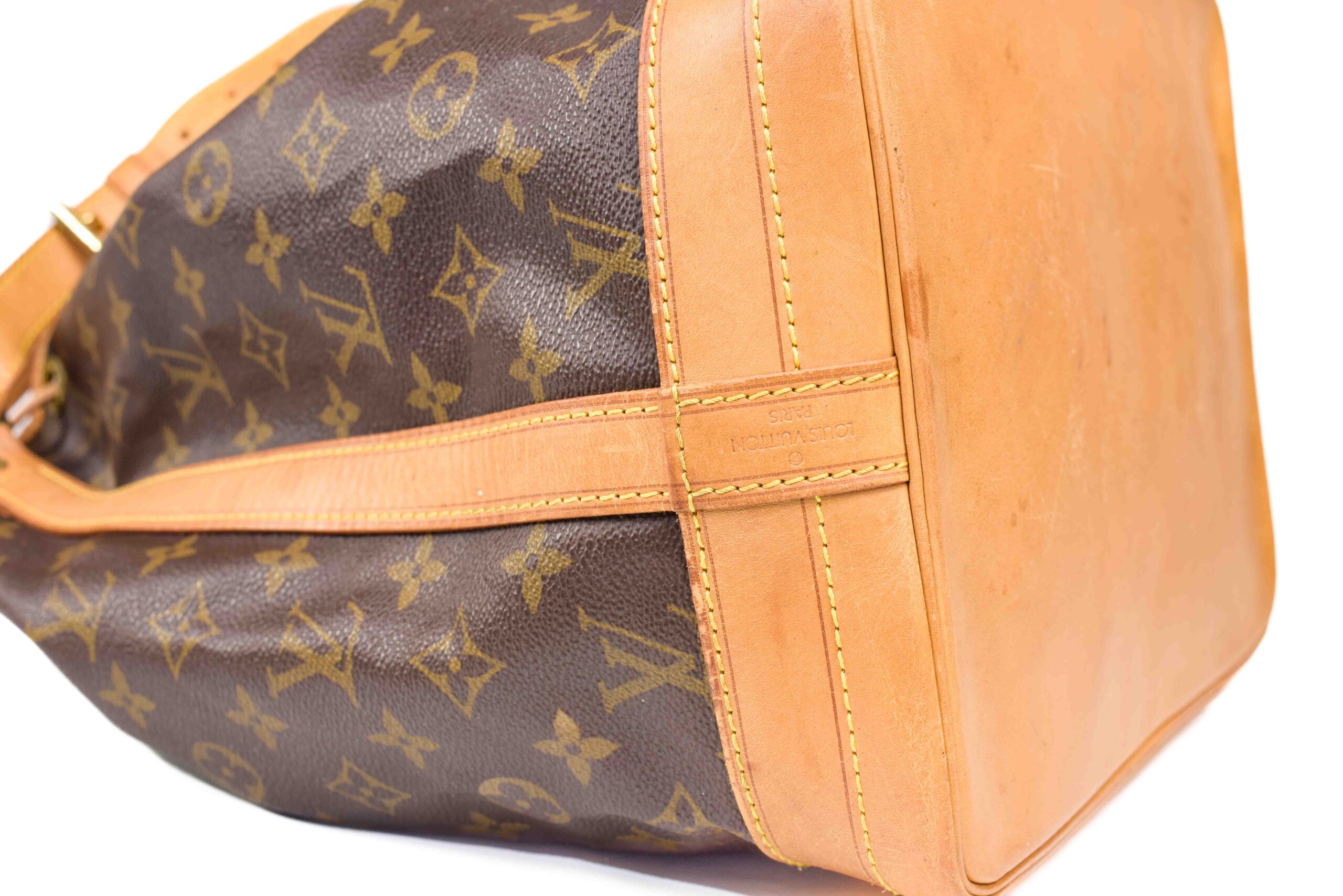Generellt: En Noé i bra skick med vacker patina. Levereras ink äkthetsintyg. Väskan har skador på kantband, detta går att åtgärda hos LOUIS VUITTON om man önskar det. Knytband ersatt till ett icke original. Finns även sprickor i skinn men väskan är generellt fin.