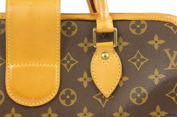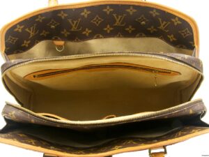 | Generellt: Mycket fin och ovanlig väska. Vacker patina på skinn utan några större fläckar. Monogram i perfekt skick. Ljus fin inredning i alcantara. Metall i perfekt skick. Väskan levereras med äkthetsbevis, dustbag, lås och nametag. |