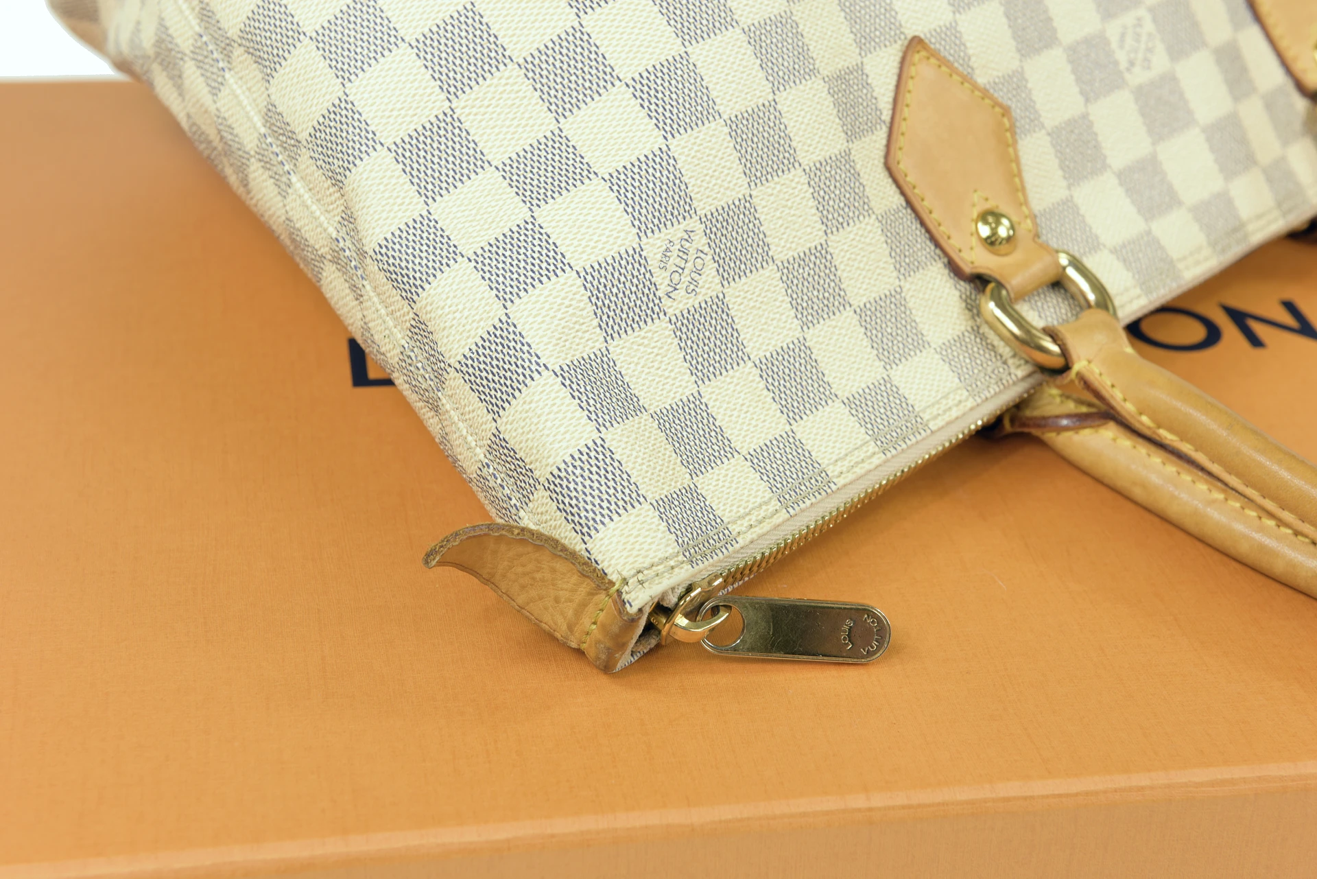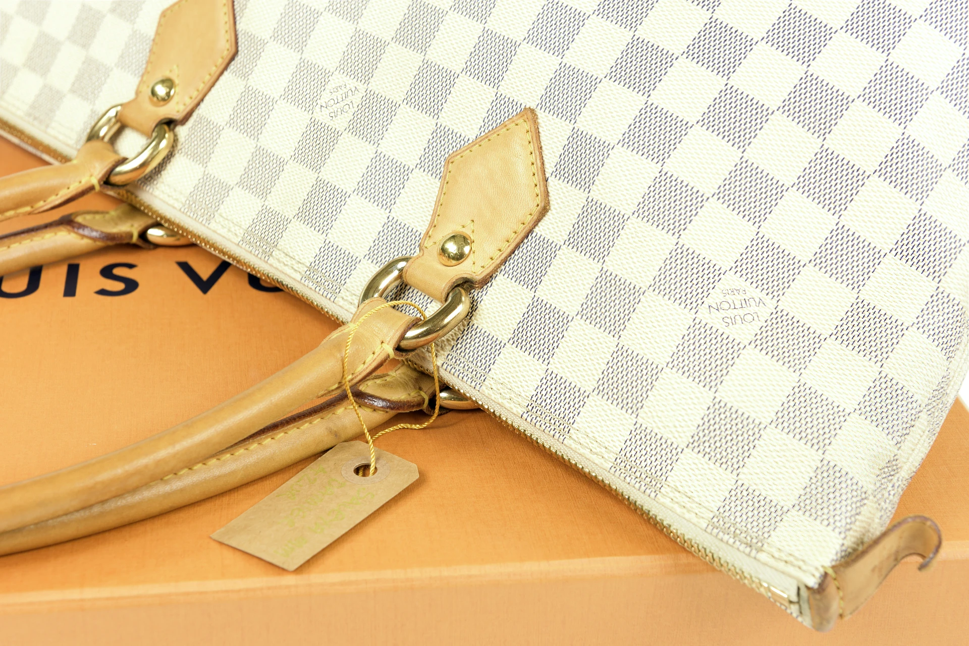 Generellt: En mycket fin Louis Vuitton Saleya MM Damier Azur. Ren och fin inuti. Ljus fin Damier Azur. Levereras ink äkthetsintyg och kartong.