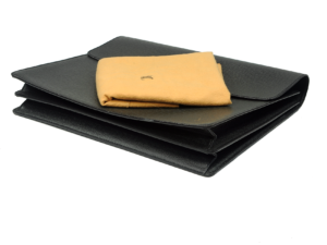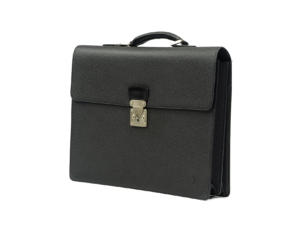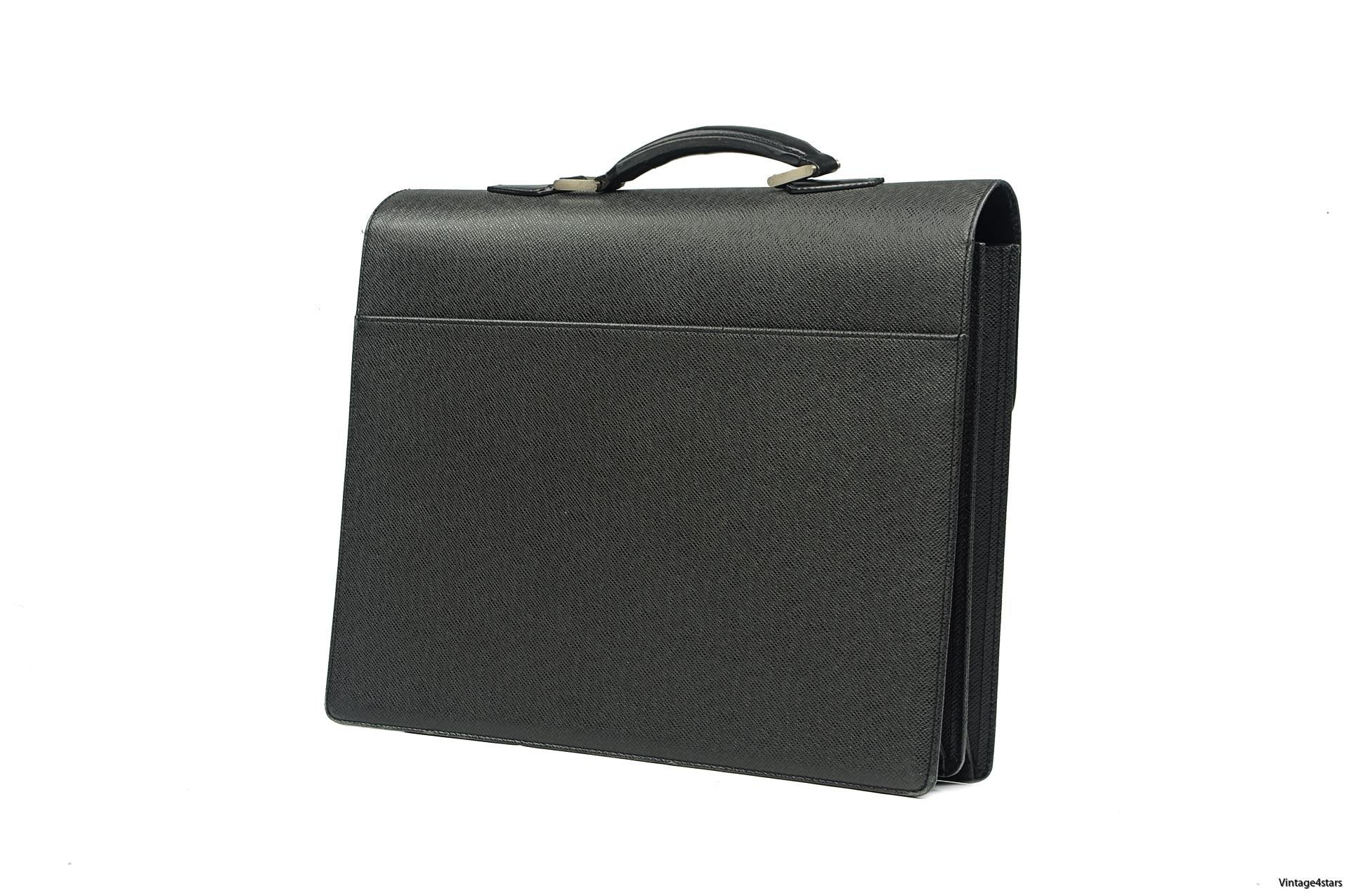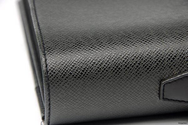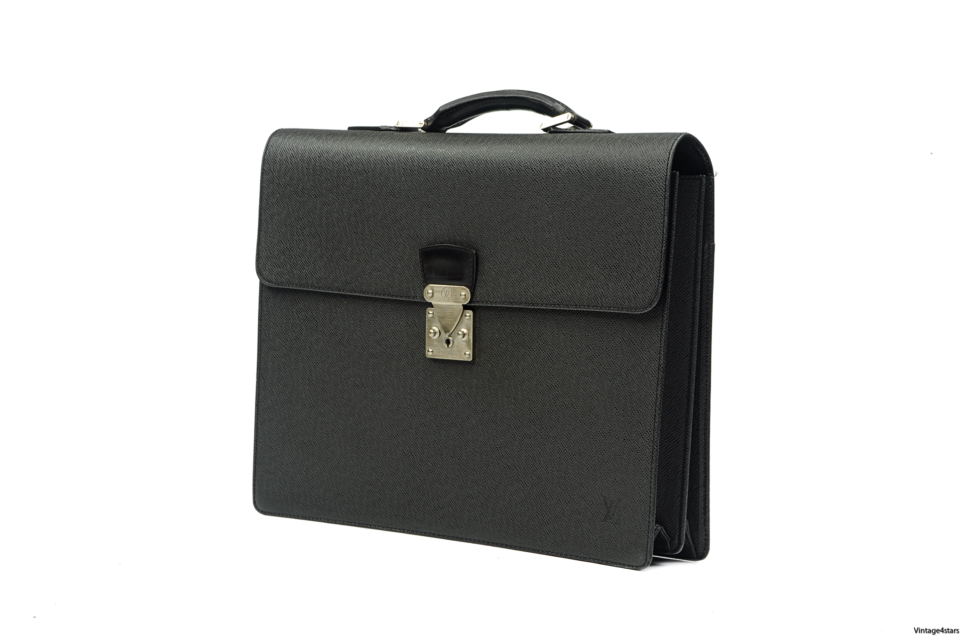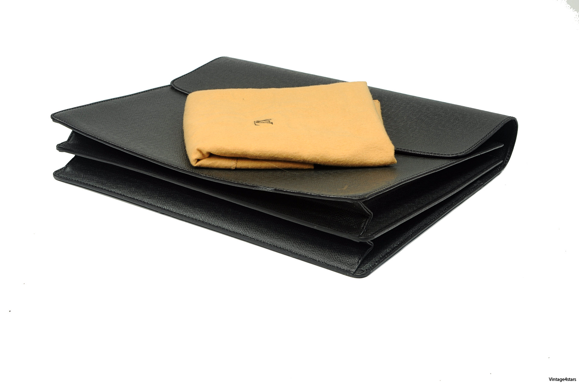 Louis Vuitton Serviette Moskova Taiga i svart med metalldetaljer i silver.