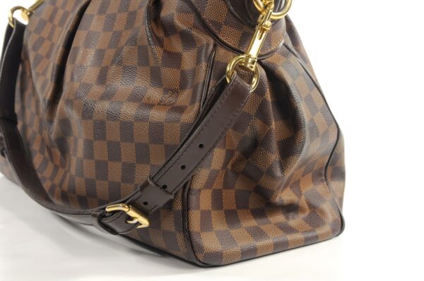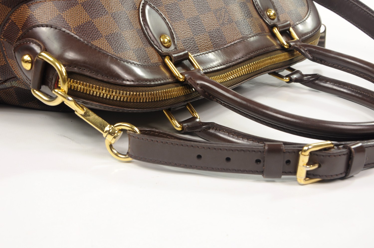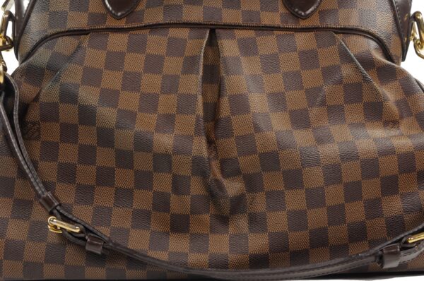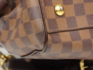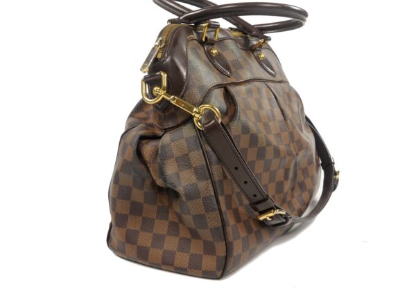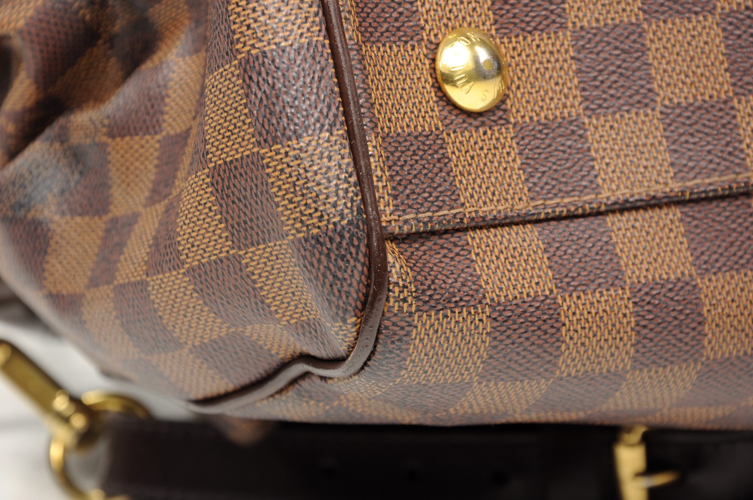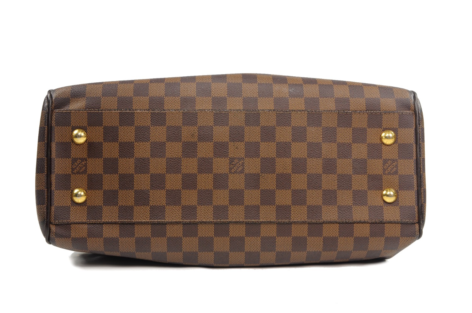 Generellt: En mycket fin Louis Vuitton Trevi GM Damier Ebene. Ovanligt bra skick på skick och Damier. Någon enstaka fläck och lite smutsig Alcantara vid öppning. Vacker kontrast med den röda inredningen. Levereras ink rem och äkthetsintyg.